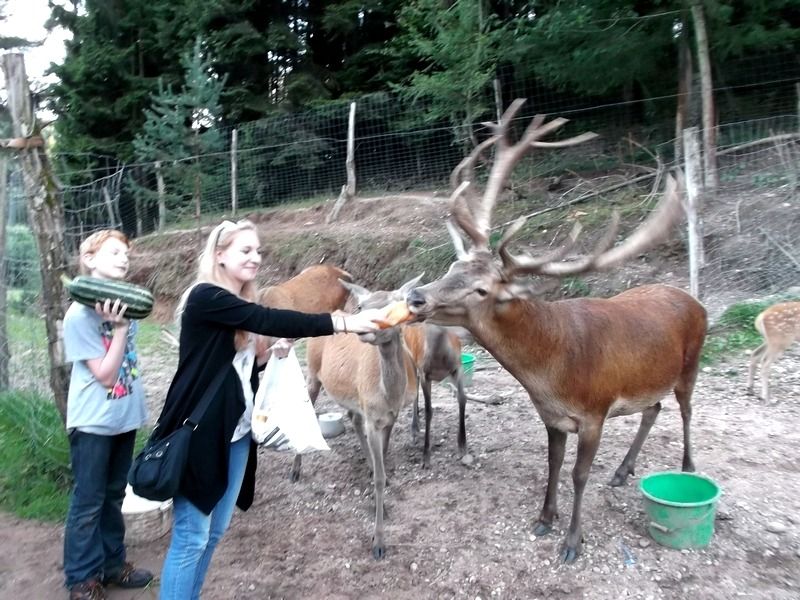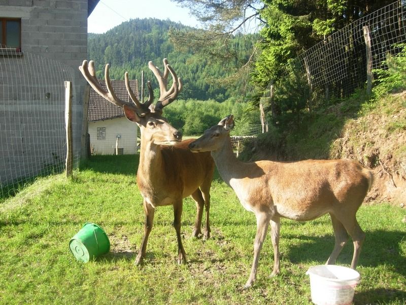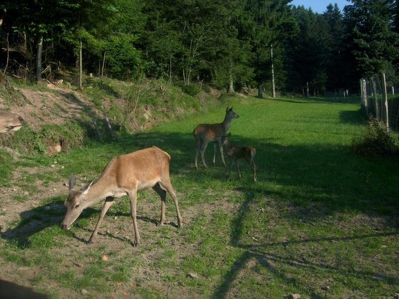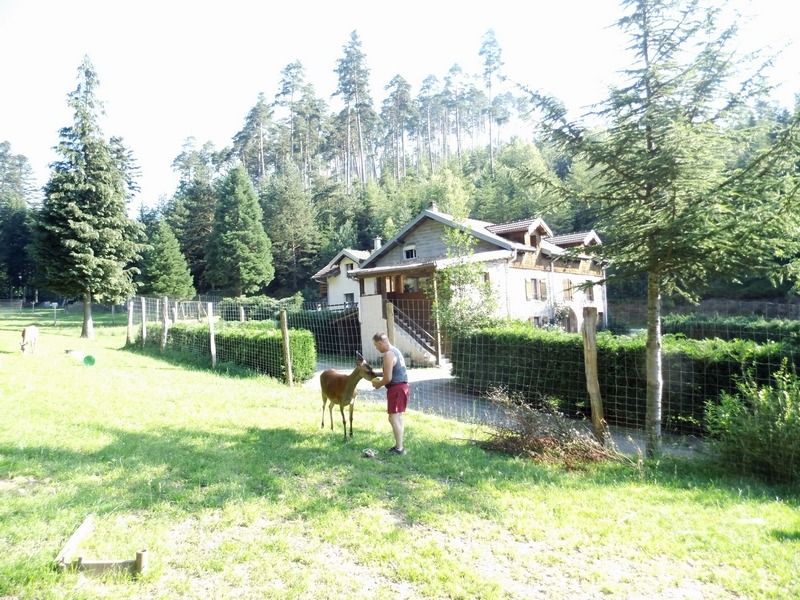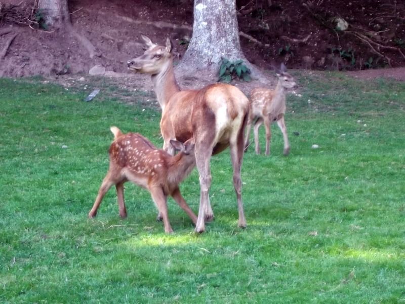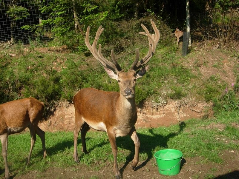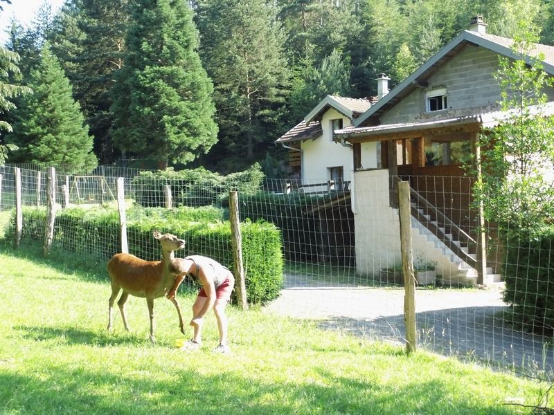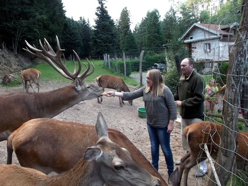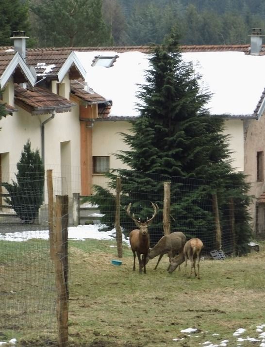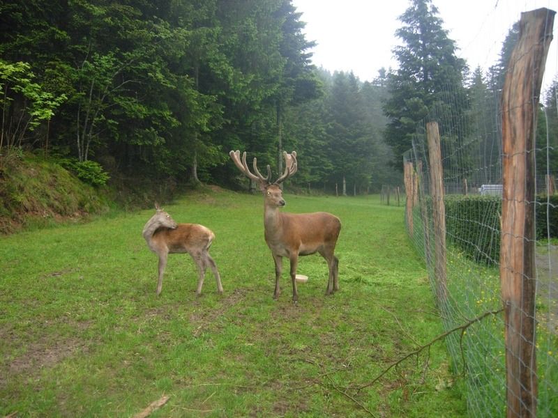 La création d'un parc accueillant des cervidés a demandé beaucoup de travail d'aménagement et de démarches administratives pour obtenir les autorisations nécessaires, mais quelle joie de pouvoir, depuis les fenêtres du gite, regarder vivre ces splendides animaux. Avec un peu de patience, chacun peut connaître l'honneur de voir la biche venir manger dans sa main. Elles peuvent aussi se chamailler, jusqu'à ce que le mâle vienne leur rappeler qui est le maître. Amoureux de la nature et des animaux, venez découvrir les cerfs dans notre parc afin de passer un moment inoubliable.