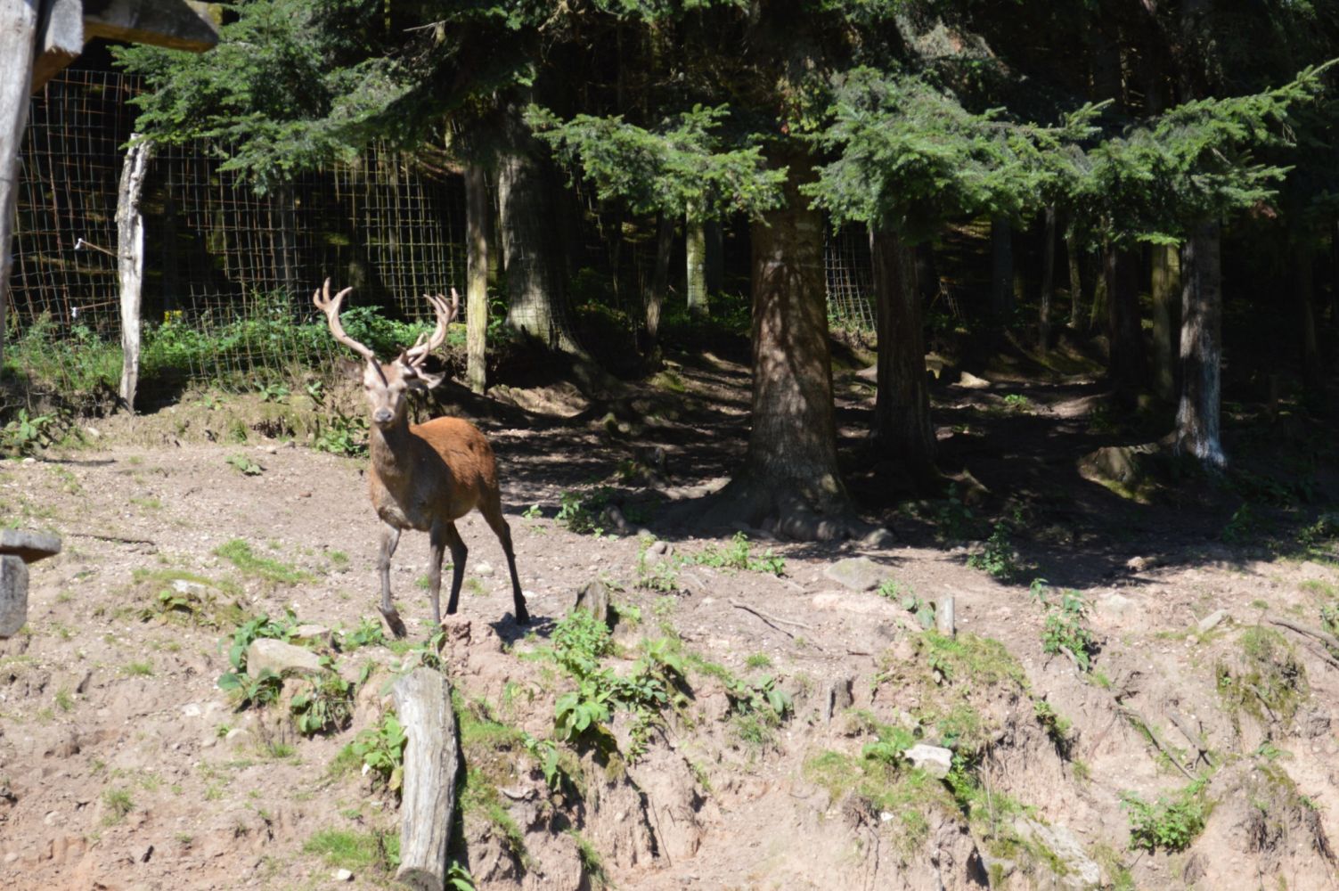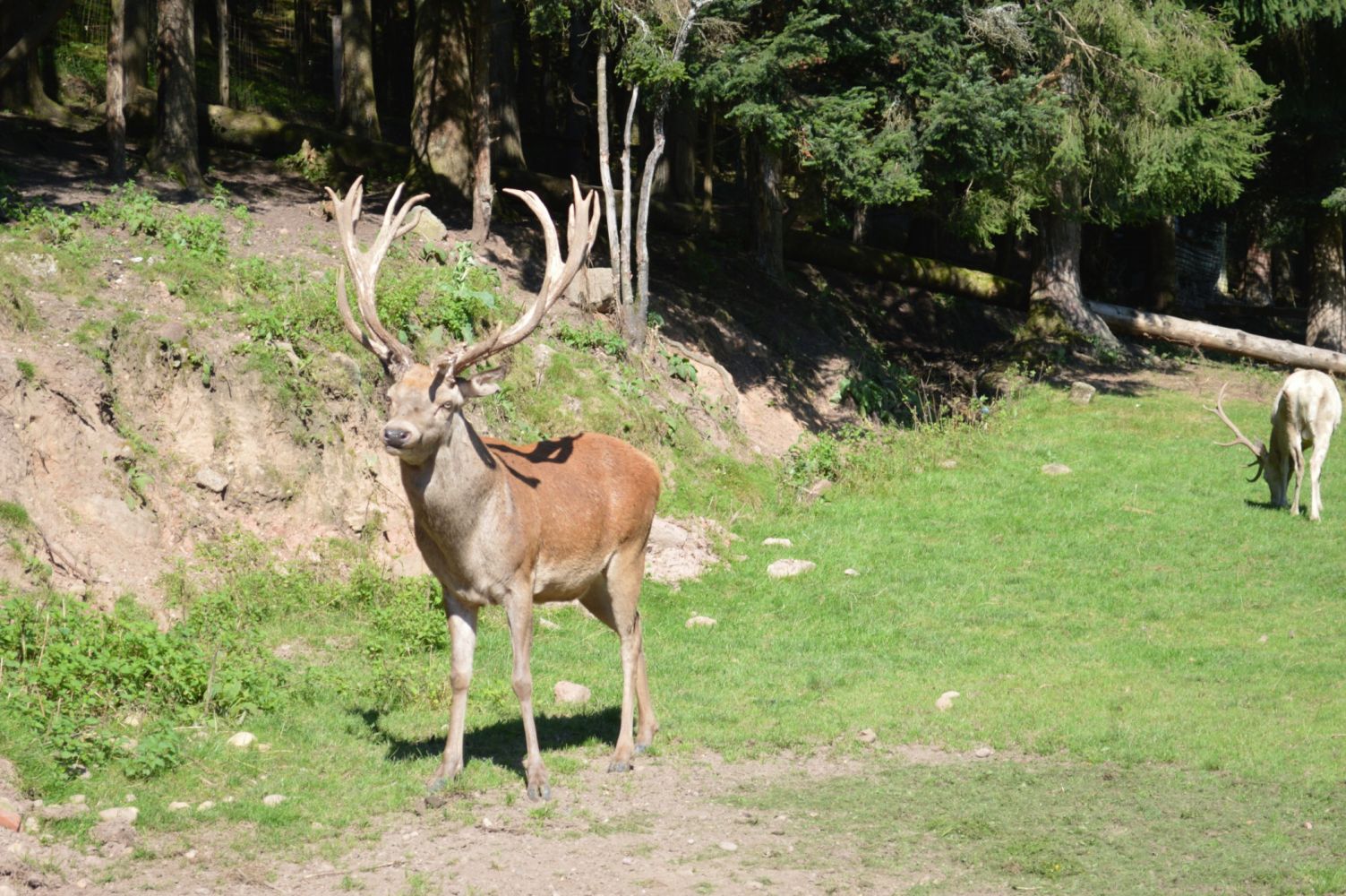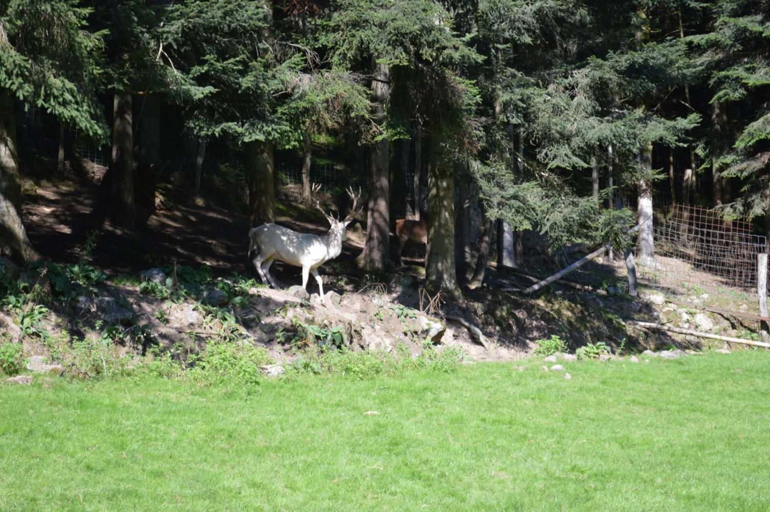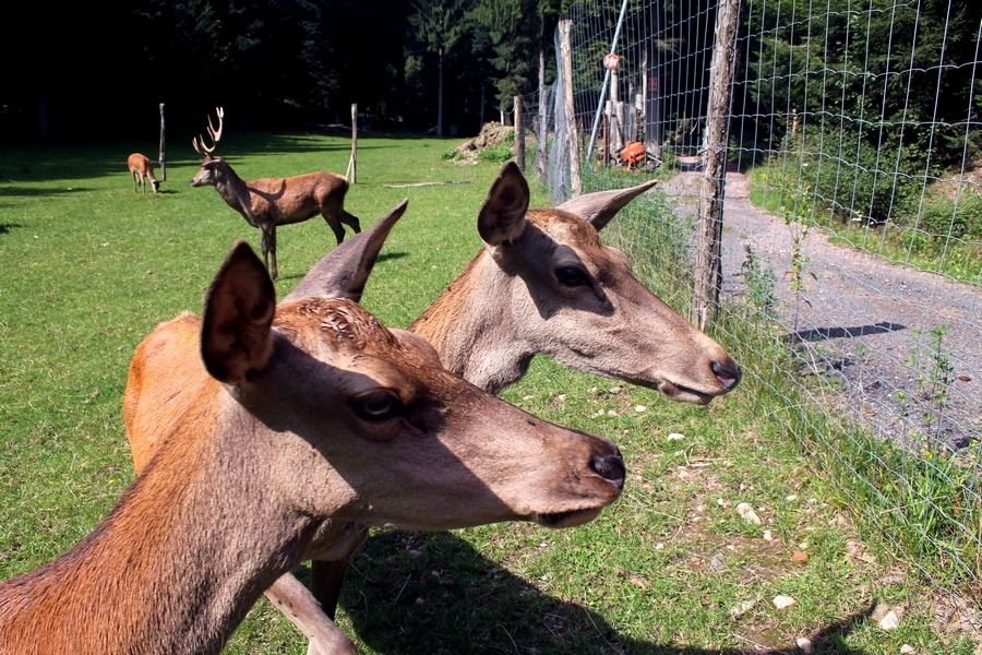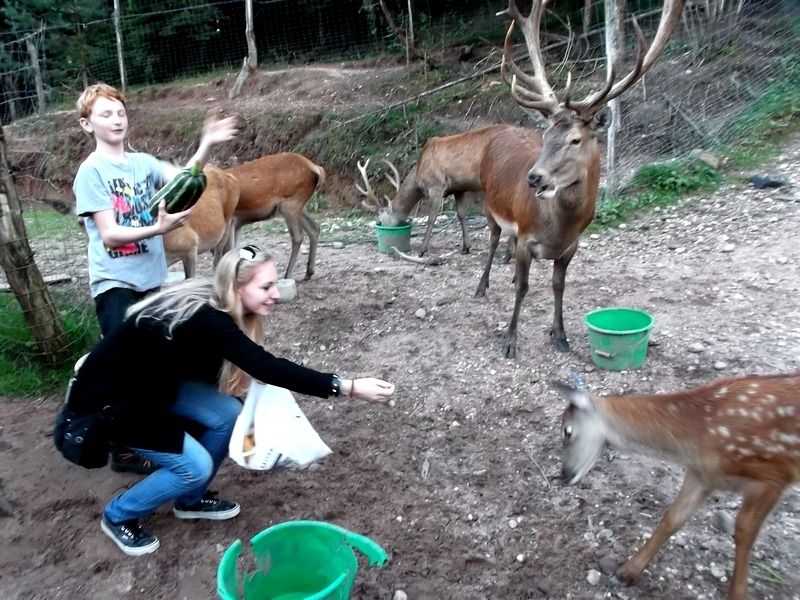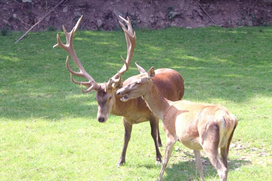 La création d'un parc accueillant des cervidés a demandé beaucoup de travail d'aménagement et de démarches administratives pour obtenir les autorisations nécessaires, mais quelle joie de pouvoir, depuis les fenêtres du gite, regarder vivre ces splendides animaux. Avec un peu de patience, chacun peut connaître l'honneur de voir la biche venir manger dans sa main. Elles peuvent aussi se chamailler, jusqu'à ce que le mâle vienne leur rappeler qui est le maître. Amoureux de la nature et des animaux, venez découvrir les cerfs dans notre parc afin de passer un moment inoubliable.