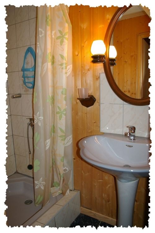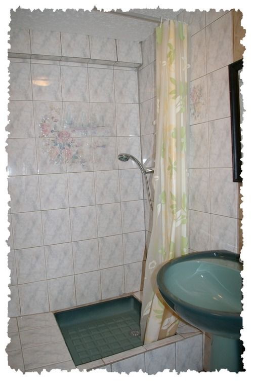 Chambre n°1: un lit deux personnes, une armoire, un coin douche, lavabo et WC indépendant