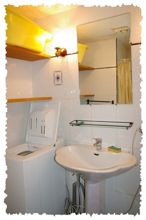 Salle d'eau équipée d'un lave linge, d'un WC et d'un lavabo